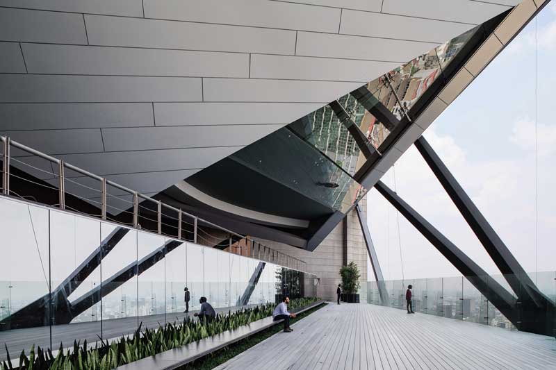 La Torre Reforma está diseñada para soportar sismos de hasta 8.5 grados. Cuenta con pisos con jardines interiores y estacionamiento automatizado.