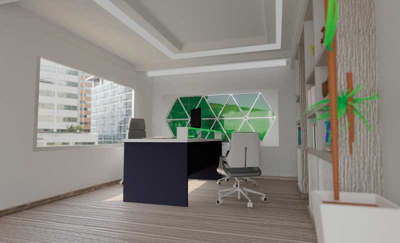 Greenfluidics no se limita en su propuesta innovadora y también ofrece la posibilidad de jugar con las texturas de los recubrimientos convencionales con los biopaneles, habilitados para convertir un edificio en un ente vivo, pensando en que cada uno de ellos se convierta en pulmones, donde el intercambio de gases favorables sea inclusive mayor al que produce un bosque sin pretender eliminarlo o sustituirlo. La imagen visual sería ver desde el cielo una topografía verde perfectamente integrada en cualquier lugar del mundo.