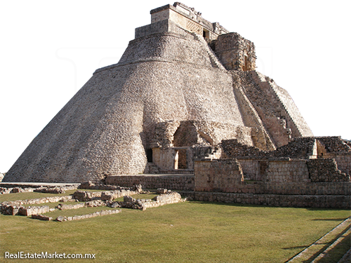 Pirámide del Gran Chilán (hechicero), ubicada en el complejo de Uxmal, en la zona arqueológica de Puuc en Yucatán