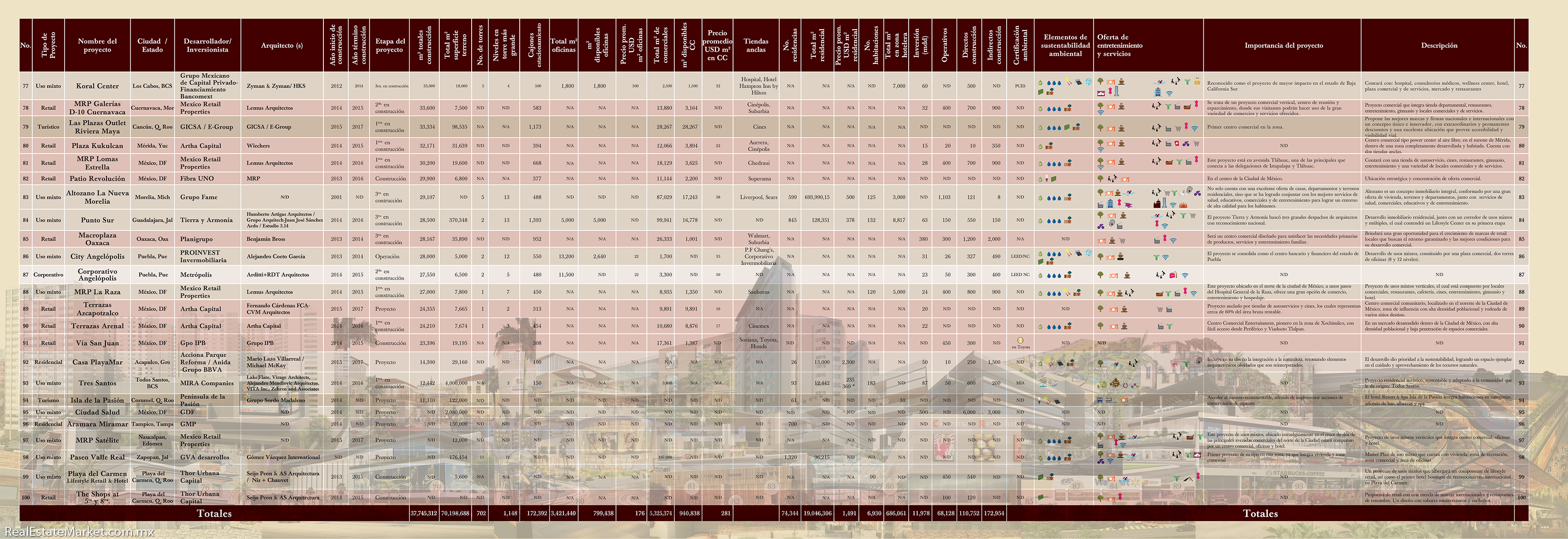 Pero no solo es la tendencia a destacar en los desarrollos que transformarán el entorno, sino también por la diversificación que tienen y por los conceptos que manejan. En este sentido, según nuestra investigación, de acuerdo al uso que se le dará. De los proyectos presentados en este Ranking, 36 se encuentran en la Ciudad de México; 12 en el Estado de México; 12 más en Quintana Roo; 8 en el estado de Jalisco; 7 en Baja California Sur; 4 en Nuevo León; 4 más en Yucatán; 3 en Veracruz; 3 en Campeche, y 3 en Puebla; Querétaro y Tabasco, tienen 2, cada entidad, mientras que los estados de Aguascalientes, Guerrero, Michoacán, Morelos, Oaxaca y Tamaulipas están presentes con un proyecto, cada uno. En lo referente a superficie de construcción, de acuerdo a los datos disponibles de los desarrolladores, se espera edificar más de 37.7 millones de m2, de los cuales el 50% (19 millones m2) se destinarán para el uso residencial; 14% (5.3 millones m2), para retail; 9% (3.4 millones m2) uso corporativo, y 1.8% (686 mil m2) se destinará para hoteles. La diferencia porcentual se debe a los espacios ocupados en áreas comunes, áreas verdes, estacionamientos, urbanización, etc.
