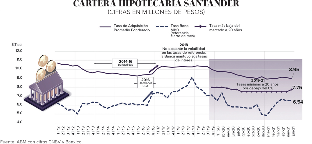 Explicó que las tasas de referencia para el crédito hipotecario, “en particular el bono a diez años, repuntó más de 100 puntos básicos, lo que trajo como consecuencia que el costo de dinero a largo plazo se haya incrementado, poniendo presión a los márgenes de los bancos, y tenemos que hacer que el negocio sea rentable para poder continuar invirtiendo en el desarrollo de nuevos productos y seguir evolucionando al sector”.