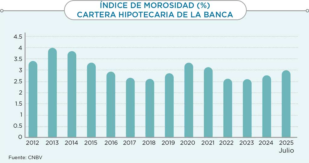 Por debajo del 3% se mantiene la morosidad del sector hipotecario bancario de México, incluso en periodos de volatilidad