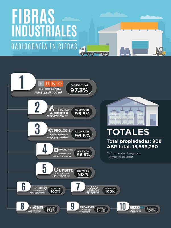 Conjuntamente, este grupo de Fideicomisos de Bienes Raíces Industriales concentran 870 inmuebles, con una ocupación de 93.1% en promedio. Los principales mercados son Baja California, Chihuahua, Coahuila, Tamaulipas, Nuevo León, Guanajuato y la zona metropolitana de la Ciudad de México.