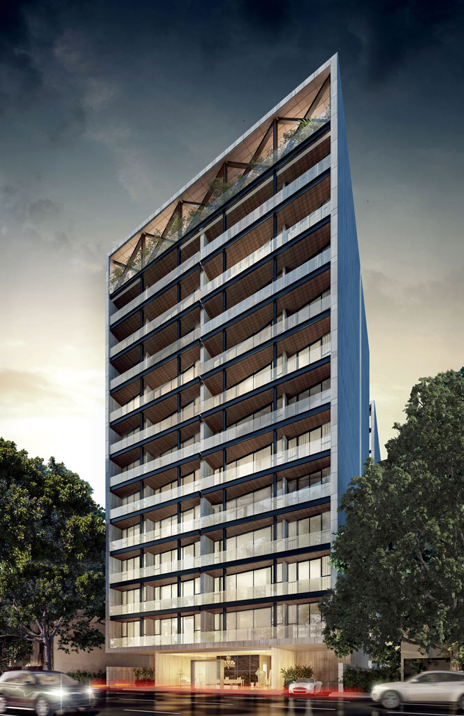 Sus dos torres albergan 12 pisos, que poseen un juego de luz y jardines verticales colgantes, que crean interacciones armoniosas con el espacio y conecta a sus residentes con la naturaleza, enlazando perfecto el modernismo de los acabados de lujo y el diseño en áreas comunes bien logrado brinda a cada espacio un estilo único.