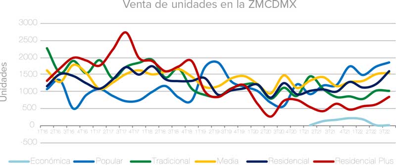 Al cierre del tercer trimestre de 2022, y de cara ya a la recta final del año, se han desplazado poco más de 18 mil viviendas en la Zona Metropolitana de la Ciudad de México (ZMCDMX). De éstas, el 42% corresponde a vivienda de hasta 1.5 millones de pesos (mdp), el 22% al segmento medio (de 1.5 a 3.2mdp), 23% residencial (3.2 a 6.4mdp), y el restante 12% para el segmento plus.