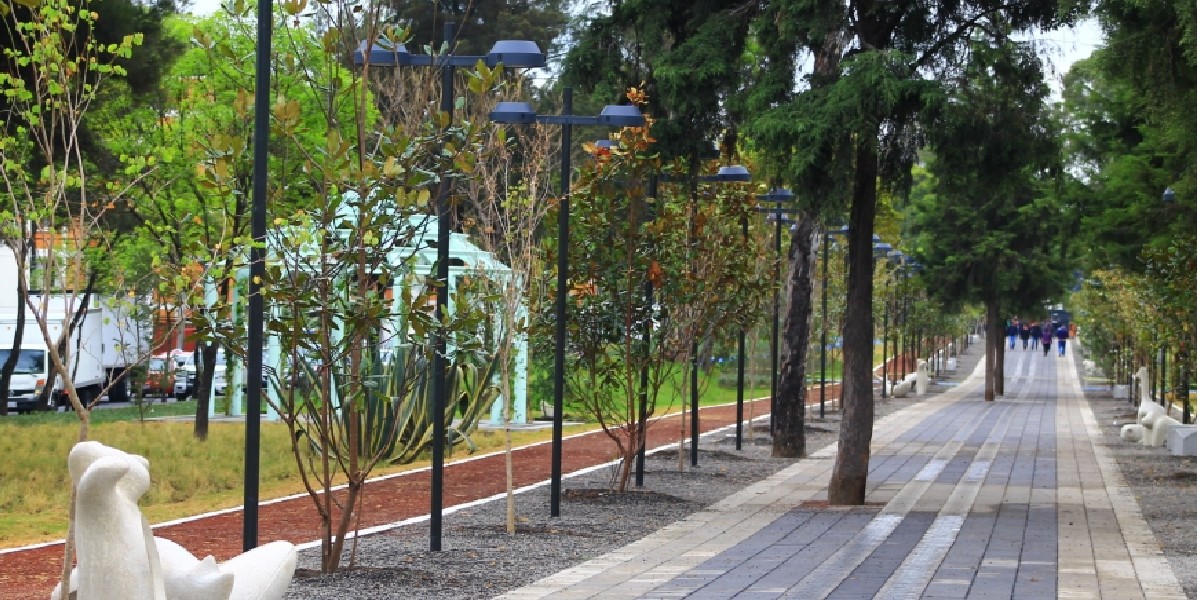 Para crear el parque, se sembraron 390 árboles, 8 mil arbustos, 12 mil metros cúbicos de cubresuelos, para dar un total de 17 mil 120 metros cuadrados de áreas verdes.