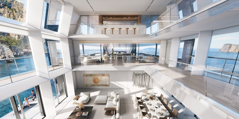 Con piscina, helipuerto y un atrio central que conecta todos los niveles, Outlier I combina tecnología, funcionalidad y elegancia, consolidando a Foster + Partners como un referente en la evolución del diseño de lujo sobre el mar.
