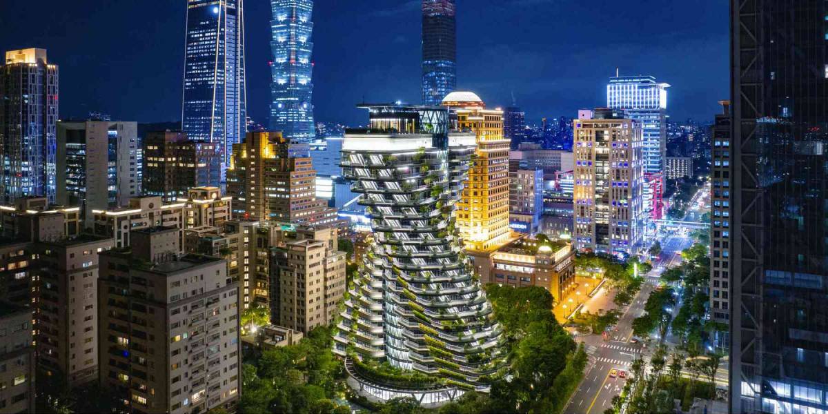 Ubicada en una zona privilegiada de Taipéi, Tao Zhu Yin Yuan es una torre residencial diseñada por Vincent Callebaut Architectures. La distintiva forma de doble hélice del edificio, inspirada en la estructura del ADN y que recuerda a una mariposa extendiendo sus alas, integra tecnología ecológica avanzada y sistemas pasivos, con un enfoque principal en la absorción de carbono y la resiliencia climática.