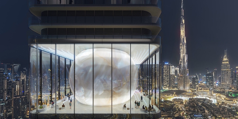Lejos de seguir la carrera por la altura o los gestos escultóricos extremos que caracterizan buena parte del skyline de Dubái, Inaura propone un enfoque arquitectónico más sutil pero distintivo. Entre los pisos superiores, por ejemplo, el diseño plantea la inserción de un ovoide que actúa como punto focal visual.