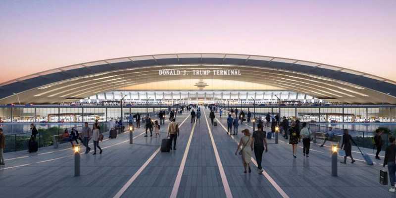 El diseño de Zaha Hadid Architects (en colaboración con Bermello Ajamil & Partners) se articula en tres componentes: un nuevo edificio terminal con una gran bóveda arqueada (“Grand Arch”), un civic spine que conecta la terminal original de Saarinen, y una estructura en forma de Y para las puertas de embarque. La propuesta enfatiza claridad espacial, flujo de pasajeros definido y abundante luz natural a lo largo del recorrido.