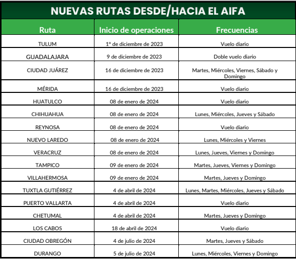 Además, la aerolínea aumentará frecuencias en los servicios de las 10 rutas ya en operación. Para alcanzar tal operación, Viva contará con 27 rutas, 72 vuelos diarios y 12 aviones de última generación dedicados a aeropuerto ubicado en el Estado de México.