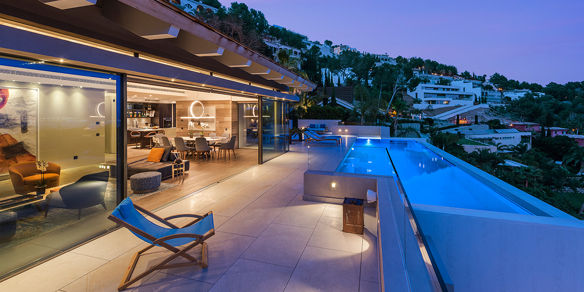 5. CALVIÀ, MALLORCA. Destaca su arquitectura de vanguardia con tabiques de cristal que permiten conectar el interior con la naturaleza que la rodea. Está equipada con lo último en tecnología, tiene seis habitaciones, seis baños y una piscina; su precio es de 21 mde.