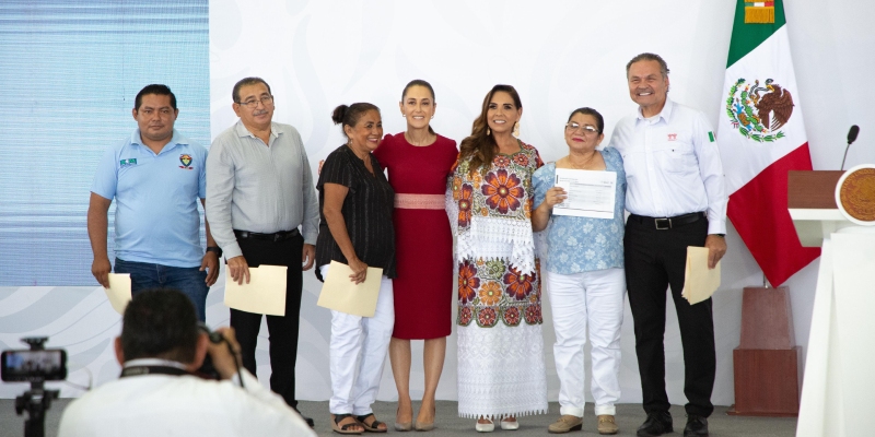 Durante la conferencia, la presidenta Sheinbaum, Romero Oropeza y la gobernadora Mara Lezama, entregaron cancelaciones de hipoteca, un crédito Mejoravit y una condonación de más de un millón de pesos a un crédito hipotecario, en beneficio de familias quintanarroenses.