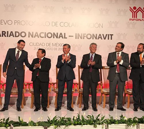 Lo anterior forma parte del Nuevo Protocolo de Colaboración que firmó el Colegio Nacional del Notariado Mexicano (CNNM), con el Instituto del Fondo Nacional de la Vivienda para los Trabajadores (Infonavit), que permitirá modernizar el proceso de escrituración en beneficio de los derechohabientes y establecer medidas que agilicen la integración de expedientes.