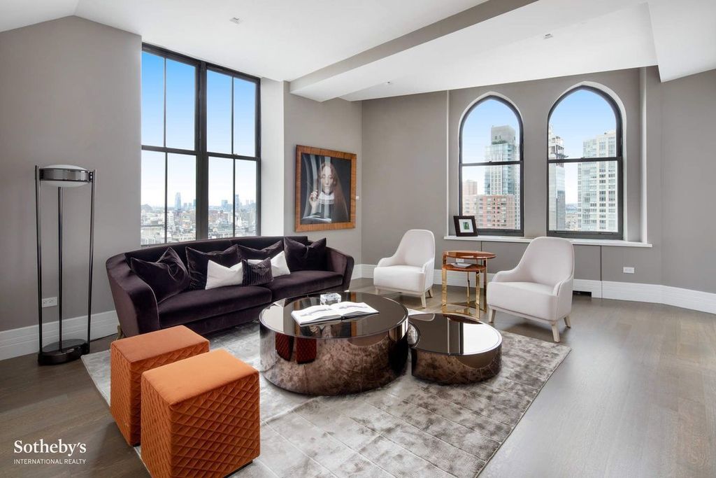 With four exposures providing 56 of frontage along the Park and vistas of downtown Manhattans most coveted architecture, the pre-war details inside are equally matched with the iconic views revealed by its elegant arched windows. The foyer opens into a dramatic atrium with its breathtaking bronze staircase as its centerpiece. The Crowns ceiling height, coupled with its gallery-sized walls, make this penthouse an art collectors paradise.