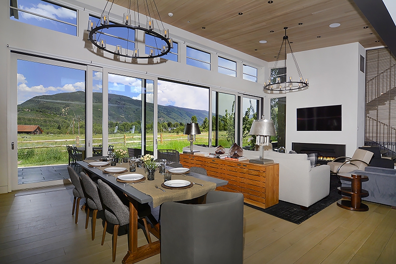 The open floor-plan and the floor-to-ceiling sliding glass doors in the living area allow an extension of the views inside as well as out. The wide-planked white oak wood floor, the hemlock fir interior ceiling detail, the white Caesar stone in the Thurston designed kitchen lend to the modern & stylish, yet warmth of the house. The main-level master bedroom appeals to many as you can seamlessly live on one level. There are three bedrooms upstairs, one is currently being used as a spacious office, all with high ceilings and large windows. On the lower level there are 3 more bedrooms, a media room, and even a basketball court for your guests or family to be entertained for hours. Located on Snowbunny Lane, downtown Aspen is an easy drive or bike with the option of a shuttle stop just steps away... adding to the convenience and desirability of this spectacular new home.