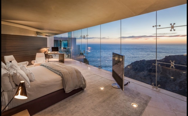 El hormigón blanco, el acero inoxidable y el vidrio se elevan en un diseño en voladizo, ofreciendo algunos de los panoramas más hipnóticos del Pacífico. La naturaleza pasa a través de la casa a través de paredes de vidrio de piso a techo. Una casa de huéspedes independiente y unas impresionantes terrazas al aire libre, que incluyen un espacio de entretenimiento en la azotea con cocina y spa al aire libre, revelan una reverencia por los alrededores.